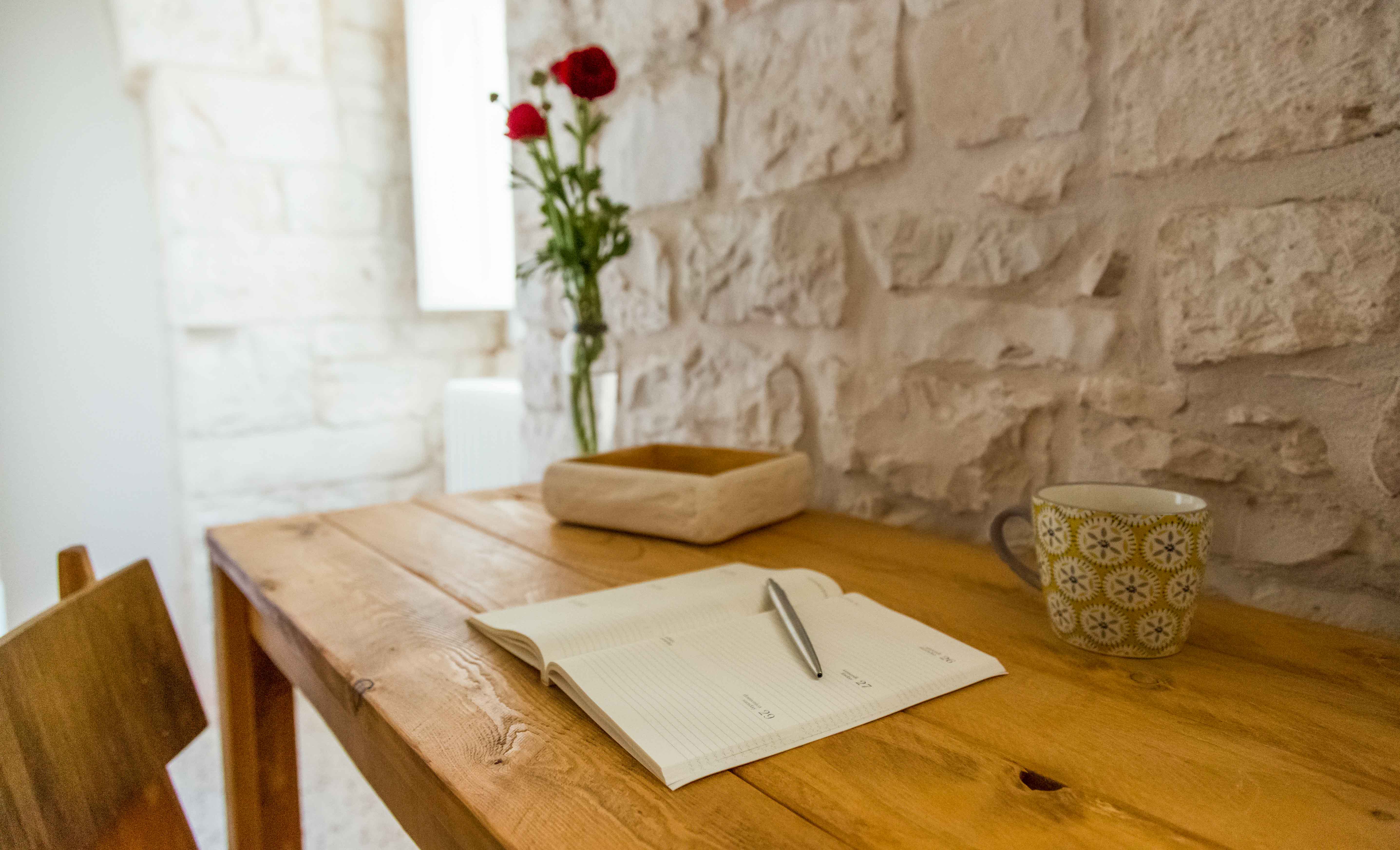On the last floor, the room has a private access on the terrace. The wall is made of stones, crafted one by one by local artisans, the vault is a star vault, the linen curtains are hand made as the wrought iron bed. Your walking will be a step on a traditional “cocciopesto” floor.
